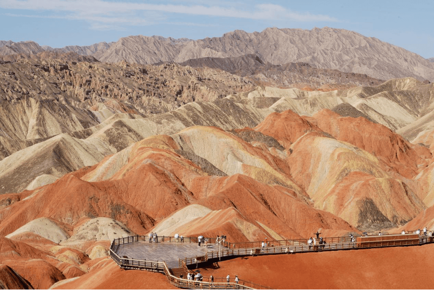 再往西行,我们来到了张掖市,张掖以其壮丽的丹霞地貌而闻名于世,张掖丹霞国家地质公园位于张掖市临泽县,以其独特的色彩和奇特的造型吸引了无数游客,您可以欣赏到日出、日落时分丹霞地貌的壮丽景色,仿佛置身于童话世界。